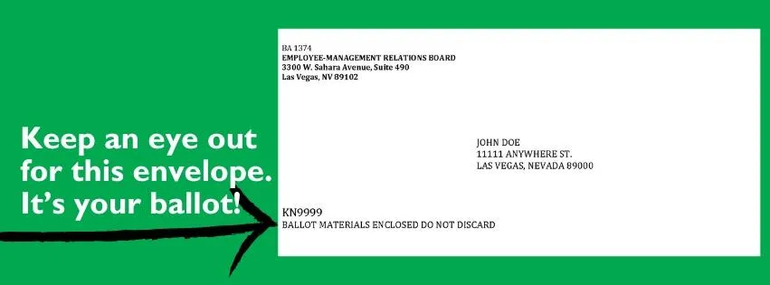 The Employee-Management Relations Board is mailing out ballots today. If you do not recieve your ballot by August 5, give us a call at 702-202-3633 and an organizing committee member will be happy to help you out.